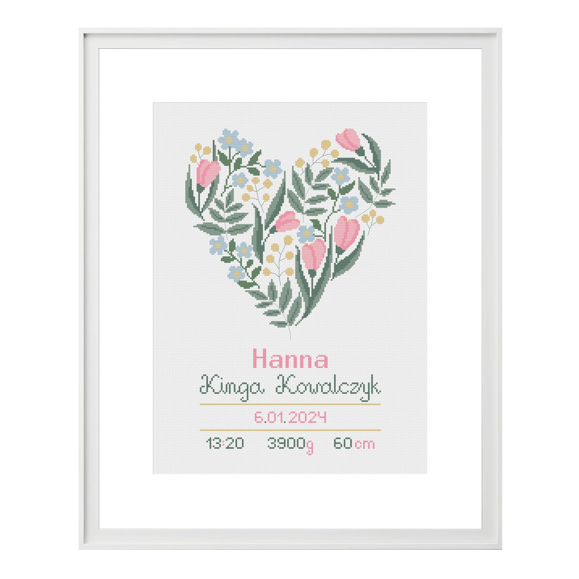 Kwiatowe serce – pastelowe – wzór haftu krzyżykowego