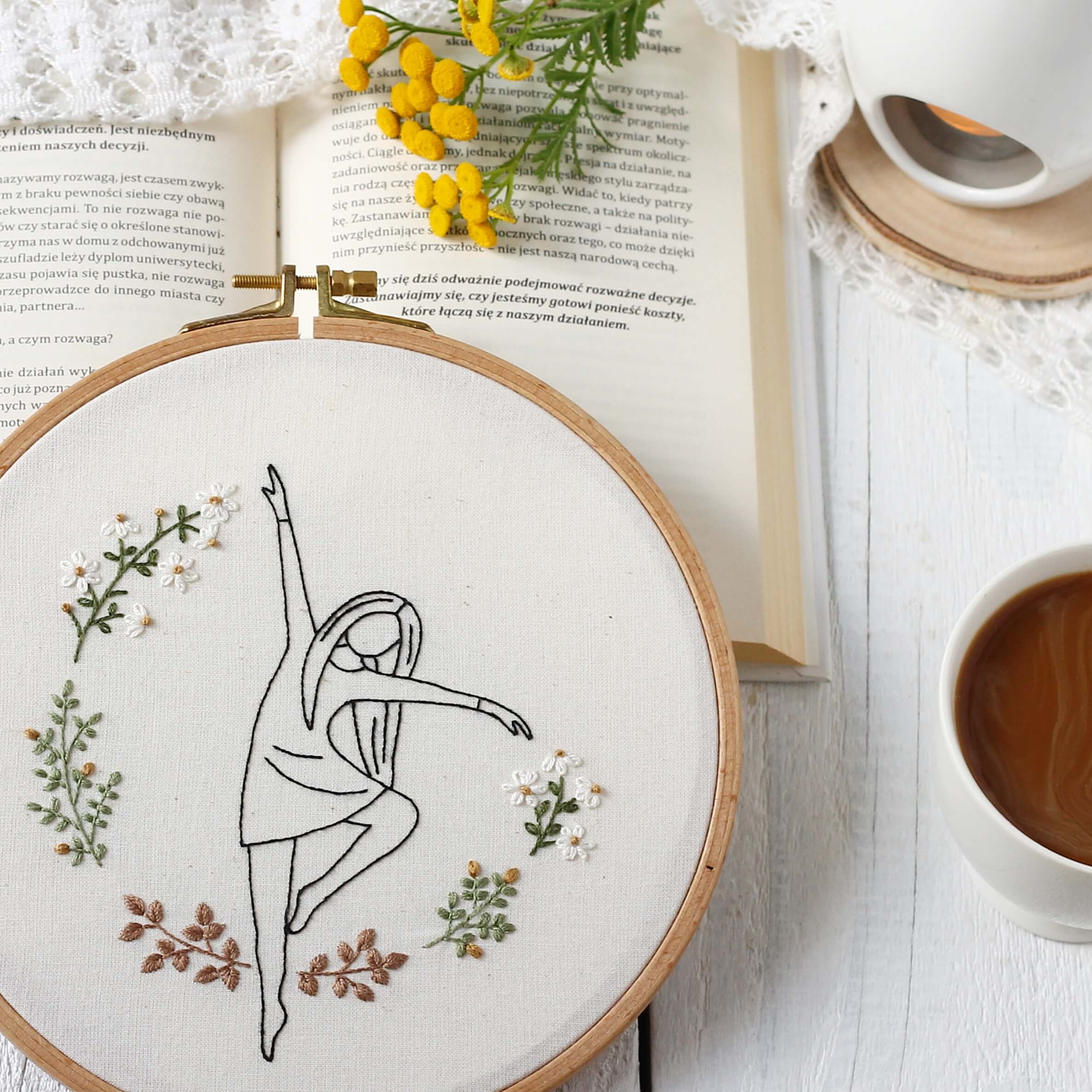 Wzór i instrukcja wyszycia tancerki wśród kwiatów bardzo ułatwi Ci pracę. Wystarczy, że skopiujesz wzór na tkaninę, zapoznasz się z instrukcją (którą możesz także wydrukować) i od razu przystępujesz do pracy nad haftem.
