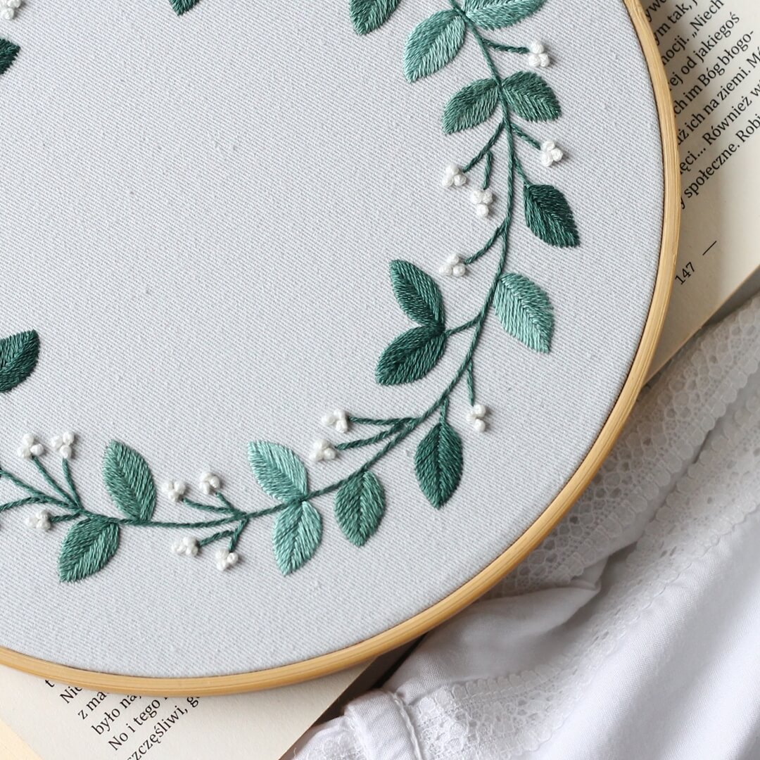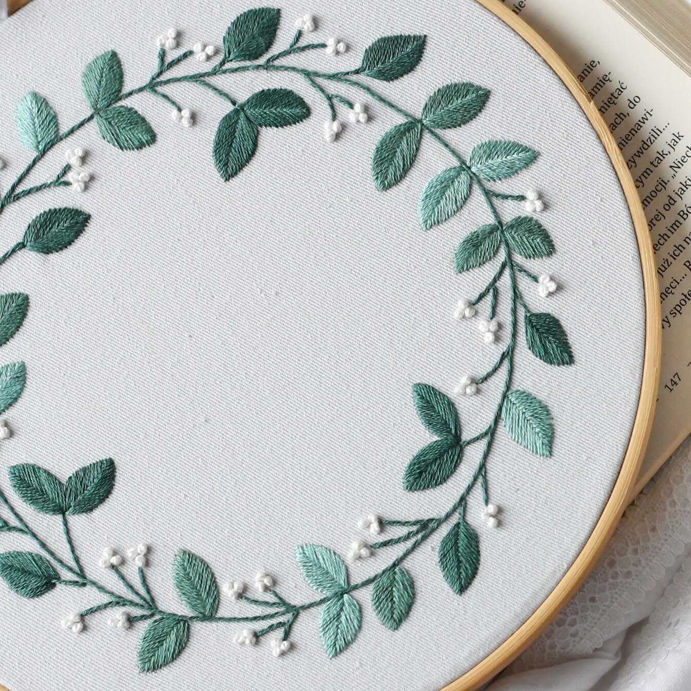 Wzór i instrukcja wyszycia wianka z kuleczkami bardzo ułatwi Ci pracę. Wystarczy, że skopiujesz wzór na tkaninę, zapoznasz się z instrukcją (którą możesz także wydrukować) i od razu przystępujesz do pracy nad haftem.